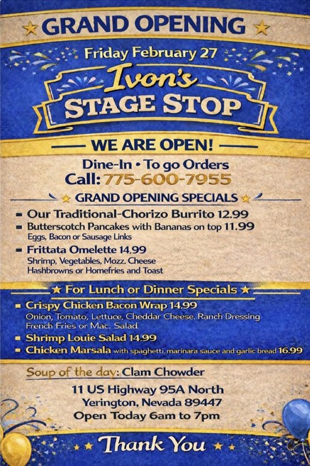 Yerington NV - February 20, 2026 Good evening Yerington community, I hope each of you were able to stay warm...