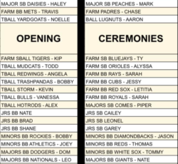 The national anthem was sung by RoMijo Conchola; Player Pledge was read by ZayVerie Baumback; and First Pitch was thrown by Marion “Babe” Rodgers (99 years old) and caught by Bryson Veil (9 years old).