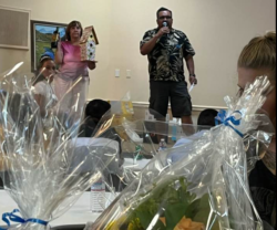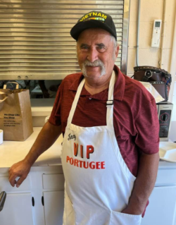 Linguisa was available for purchase and raffle tickets were sold at the Festa. The raffle prizes included a handmade afghan by Marian Pinkerton and an original painting by Frank McGowan. All proceeds from the raffle go towards the Alvin Matheus Memorial Portuguese Scholarship Fund.
