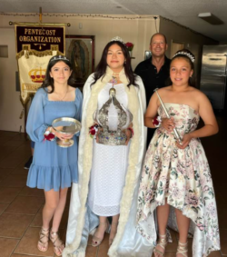 This celebration is in honor of Queen Isabella of Portugal, who prayed for help for her people during a time of great hardship and famine. On Pentecost Sunday, ships came into the harbor filled with food. A celebration was held in thanksgiving.