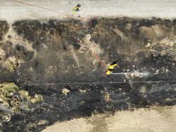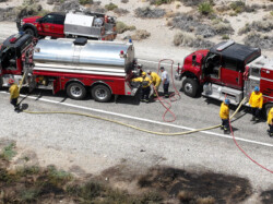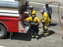 EMTs were on standby per protocol for any potential medical emergencies such as smoke inhalation, heat stroke, etc. Auxiliary members assured that the firefighters stayed well-hydrated while dousing the brush fire as they worked in 104 degree temperatures.
