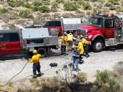 Mason Valley, Nevada ~ On Sunday, July 17, 2023 at 11:30am volunteer firefighters, EMTs (Emergency Medical Technicians) and auxiliary members responded to a small brush fire on Highway 339 just south of Nordyke.