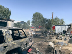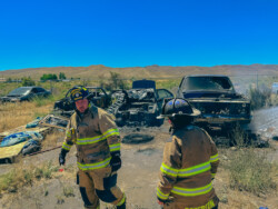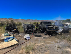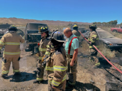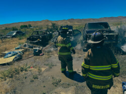 Mason Valley, Nevada ~ On the afternoon of Friday, July 28, 2023 the Yerington/ Mason Valley Fire Protection District Station was called for a fire at Yerington Paiute Tribe’s Campbell Ranch: multiple vehicles in the backyard of a home on Paiute Drive were burning, threatening homes and outbuildings.