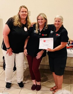 I had the honor of awarding 2 Paul Harris awards and then I was able to take away red badges and give blue badges.