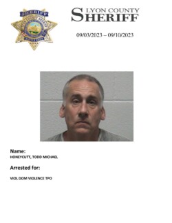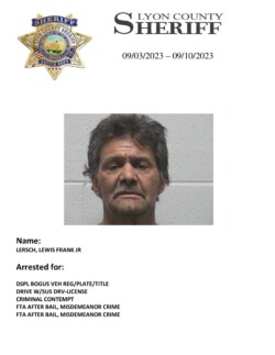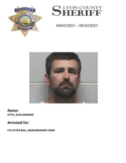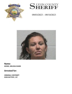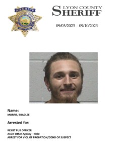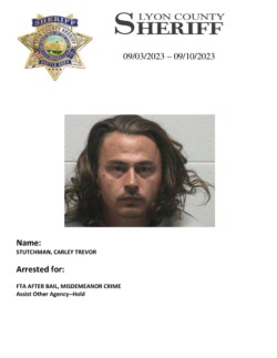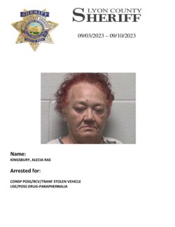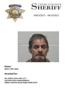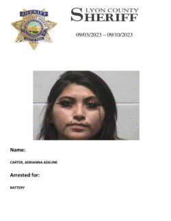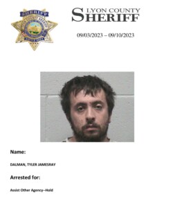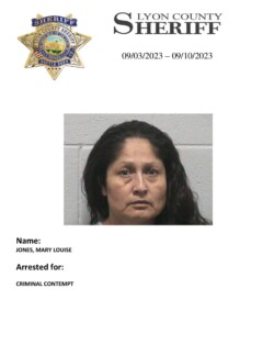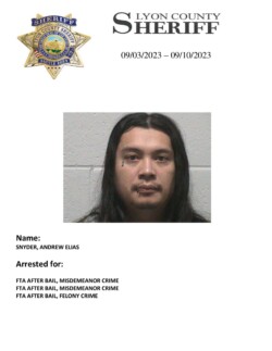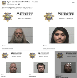 Lyon County, Nevada ~ For the week of September 03, 2023 through September 10, 2023, Lyon County Sheriff’s Office-Jail Division in Yerington recorded 26 bookings for  FTA failure to appear for misdemeanor and/or felony charges;  drug-related offenses; assault with a deadly weapon; discharging a gun/other weapon where person might be endangered; battery;  owning/possessing of gun by prohibited person; carry concealed weapon without a permit; violating a domestic battery TPO Temporary Protective Order; tribal charge; domestic battery;  false statement to/obstructing public officer; resisting public officer; trespass; parole and probation holds; criminal contempt; DUI Driving Under the Influence of Alcohol or other Substances; traffic violations; other agency holds (warrants); burglary; fugitive felon from another state; etc.