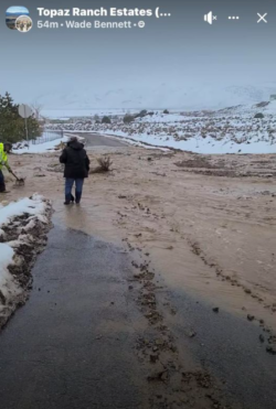 Berm work for flooding mitigation on Jordan Road at Mason Road & Hwy 339 in Yerington Monday, January 09, 2023. Photo from Yerington Public Works video.