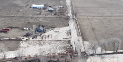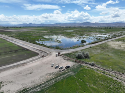 Looking West, Miller Lane in Mason Valley, Nevada with turnoff to Mason Valley Wildlife Management Area to the right: South side of Miller on the left, North on the right. Still photo from City of Yerington Public Works Department drone video on June 13, 2023.