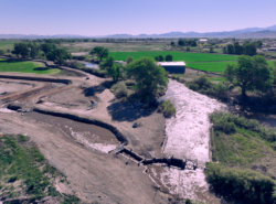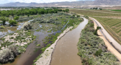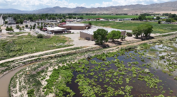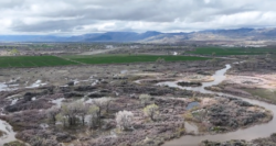 Walker River flooding looking West-southwest in Mason Valley, Nevada. Yerington airstrip on the upper left. Still photo from City of Yerington Public Works Department drone video on June 13, 2023.