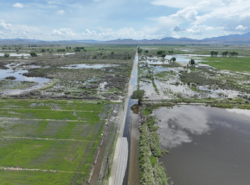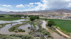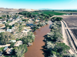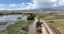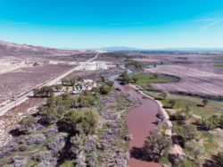 Walker River flooding looking Southeast in Mason Valley, Nevada toward Wassuk Mountain Range: Black Mountain, Bald Mountain, and snow-capped Mount Grant in the distance from left to right. Still photo from City of Yerington Public Works Department drone video on June 13, 2023.