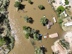 Walker River flooding looking Northeast in Mason Valley, Nevada. Still photo from City of Yerington Public Works Department drone video on June 13, 2023.