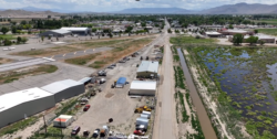 Miller Lane in Mason Valley, Nevada: South side of Miller on the left, North on the right. Still photo from City of Yerington Public Works Department drone video on June 13, 2023.