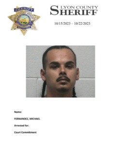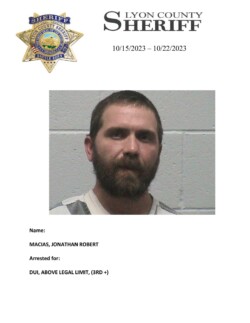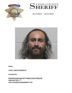 Lyon County, Nevada ~ For the week of October 15, 2023 through October 22, 2023, Lyon County Sheriff’s Office-Jail Division in Yerington recorded 28 bookings for charges listed with each person’s photograph.
