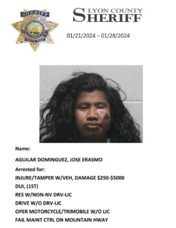 Lyon County, Nevada ~ For the week of January 21st through January 28th, 2024, Lyon County Sheriff’s Office-Jail Division in Yerington reported 43 bookings for charges listed with each person’s photograph.