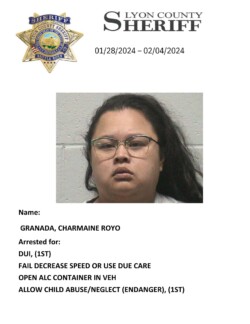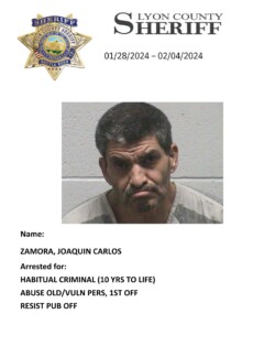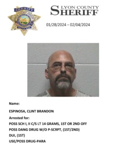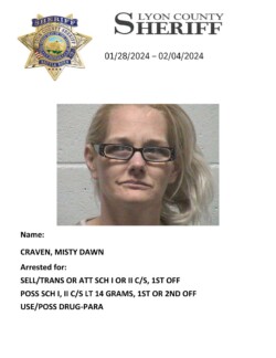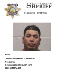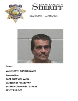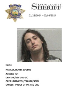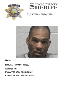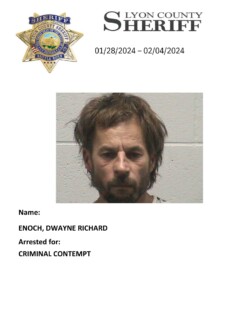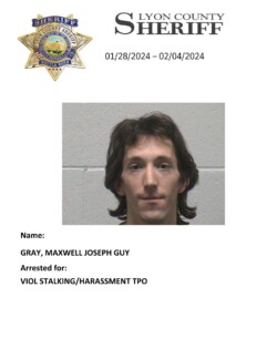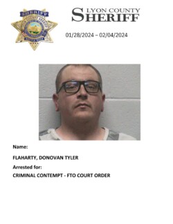 Lyon County Sheriff’s Office-Jail Division Bookings for January 28th through February 4th, 2024