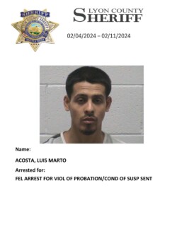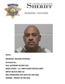 Lyon County, Nevada ~ For the week of February 4th through February 11th, 2024, Lyon County Sheriff’s Office-Jail Division in Yerington reported 26 bookings for charges listed with each person’s photograph.