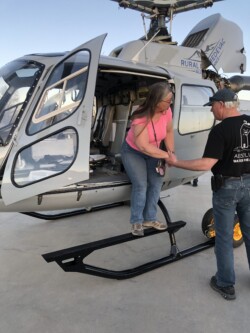 Anticipation had been building in the small crowd gathered at the Yerington Airport as the Battle Born Medevac helicopter flew in from the southwest with the Nevada sunset.