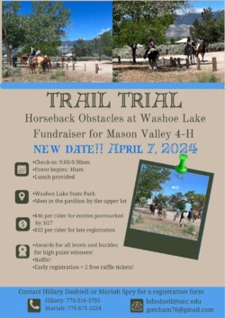 Mariah Spry with Mason Valley 4H Livestock Club Obstacle Trail Trial yesterday at Washoe Lake was a huge success: