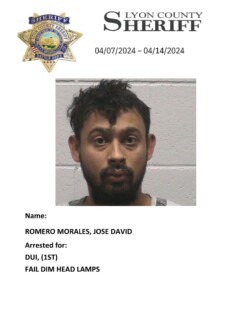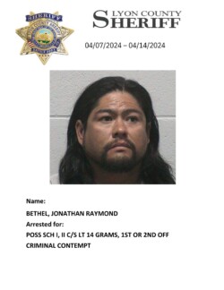 Lyon County, Nevada ~ For the week of April 7th through April 14th, 2024, Lyon County Sheriff’s Office-Jail Division in Yerington reported 38 bookings for charges listed with each person’s photograph.