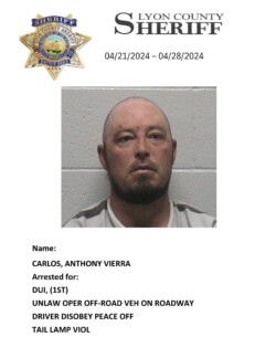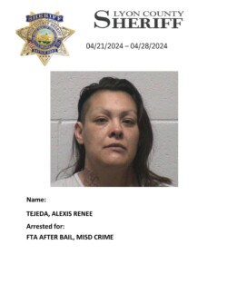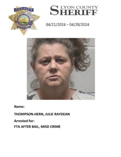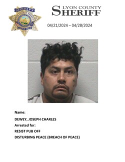 Lyon County, Nevada ~ For the week of April 21st through April 28th, 2024, Lyon County Sheriff’s Office-Jail Division in Yerington reported 34 bookings for charges listed with each person’s photograph.
