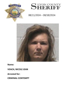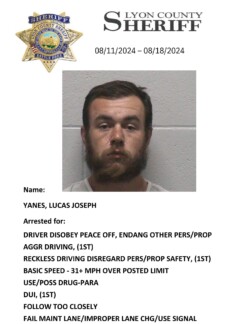 Lyon County, Nevada ~ For the week of August 11th through August 18th, 2024, Lyon County Sheriff’s Office-Jail Division in Yerington reported 36 bookings for charges listed with each person’s photograph.