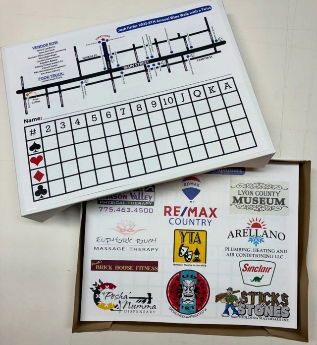 Studio33 Graphic Design and Printing in Yerington NV designed and donated the 2025 Annual Josh Farler Wine & Whiskey Walk map!