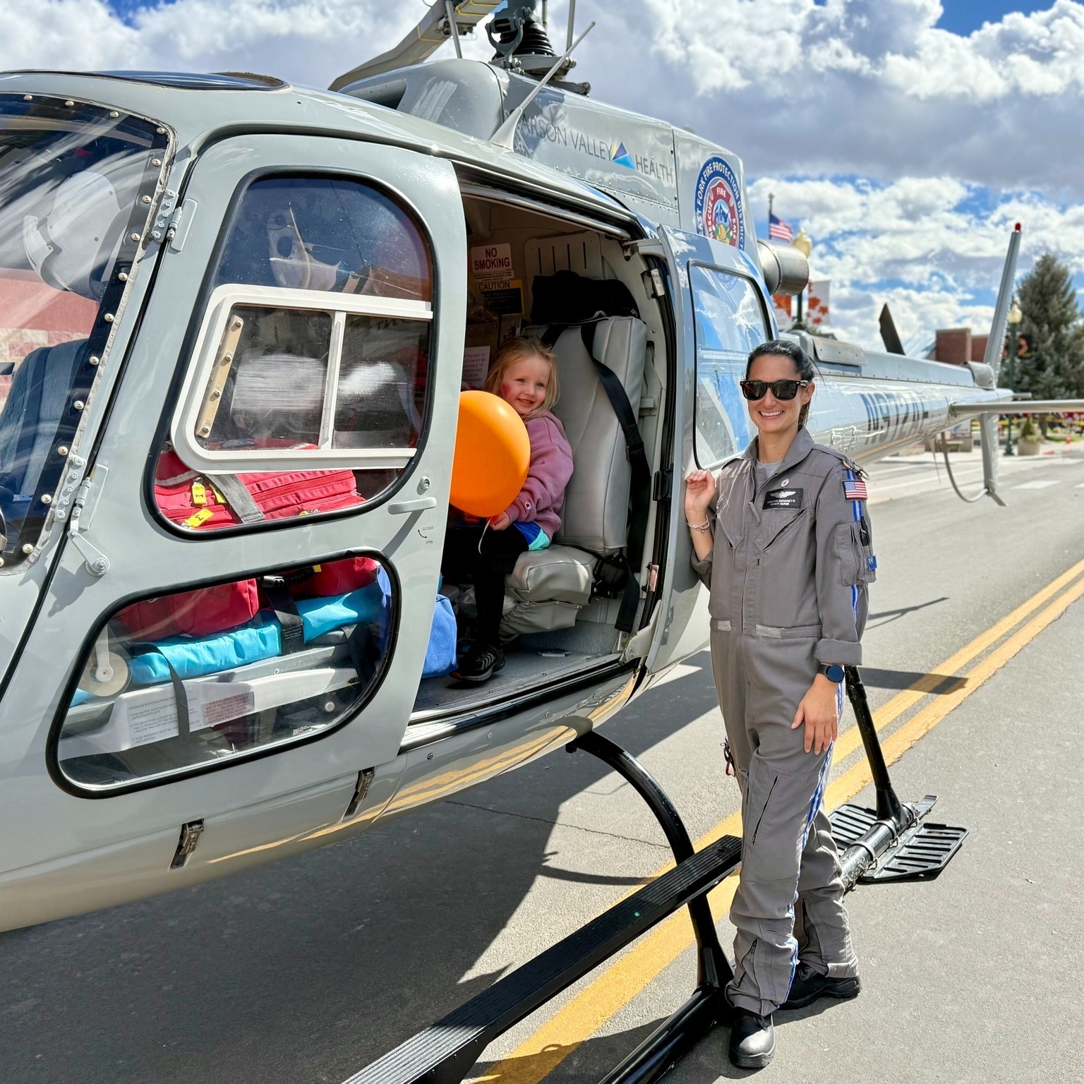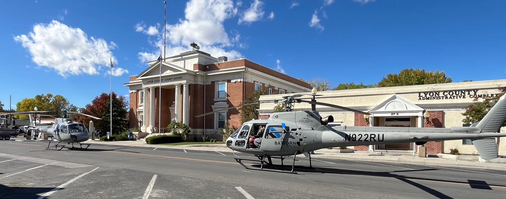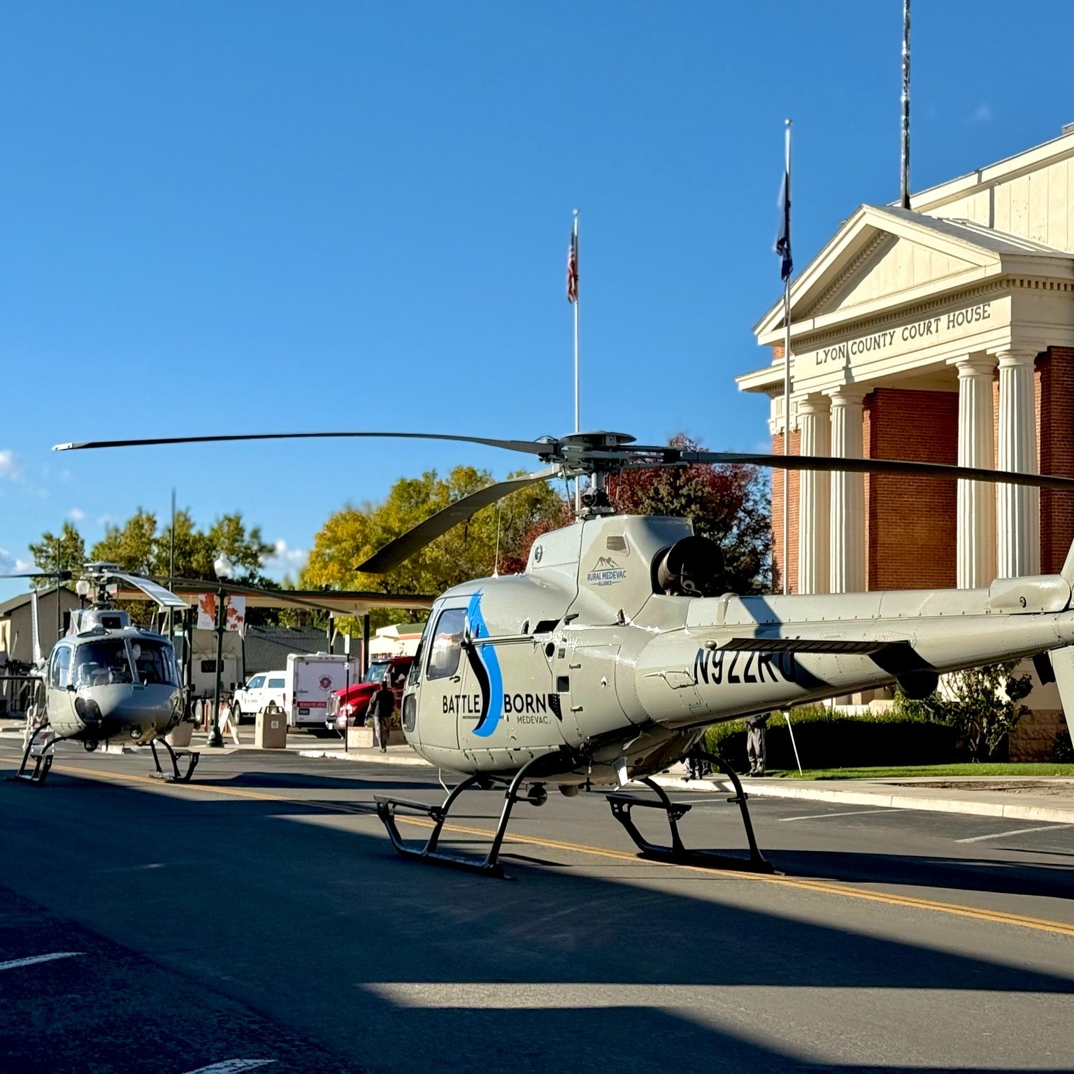 Battle Born Medevac wrote: “Huge thank you to the Nevada State Fire Marshal and all our partnering agencies for the invite to yesterday’s Public Safety Day in Yerington! It was awesome getting to land both Medevac 1 and Air 12 right on Main Street and give the public and fellow responders a close-up look at the helicopters. Truly grateful to be part of this incredible community and to work alongside such great local partners.“