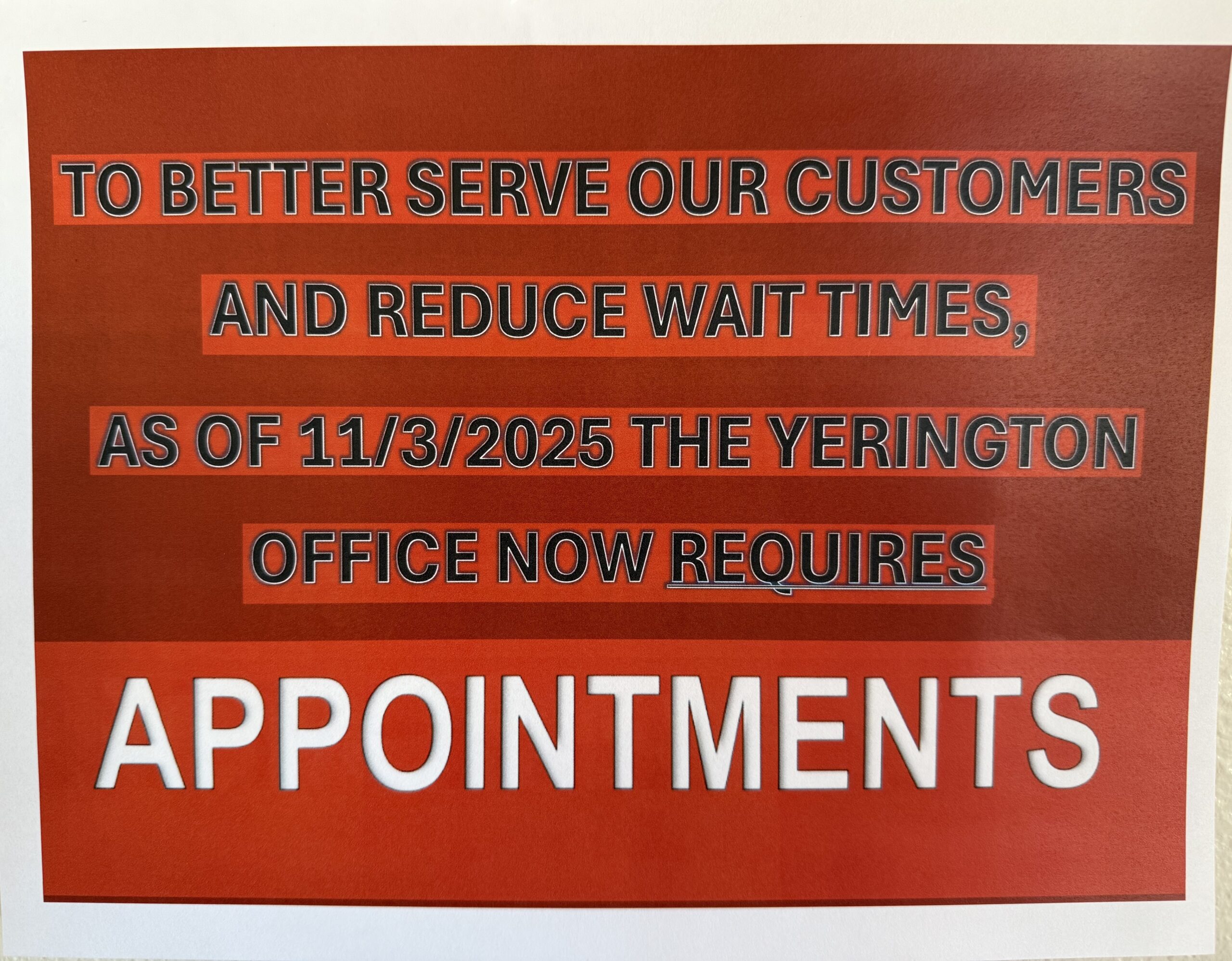 Yerington NV - November 6, 2025 The Yerington Branch of the Department of Motor Vehicles is now serving residents of...