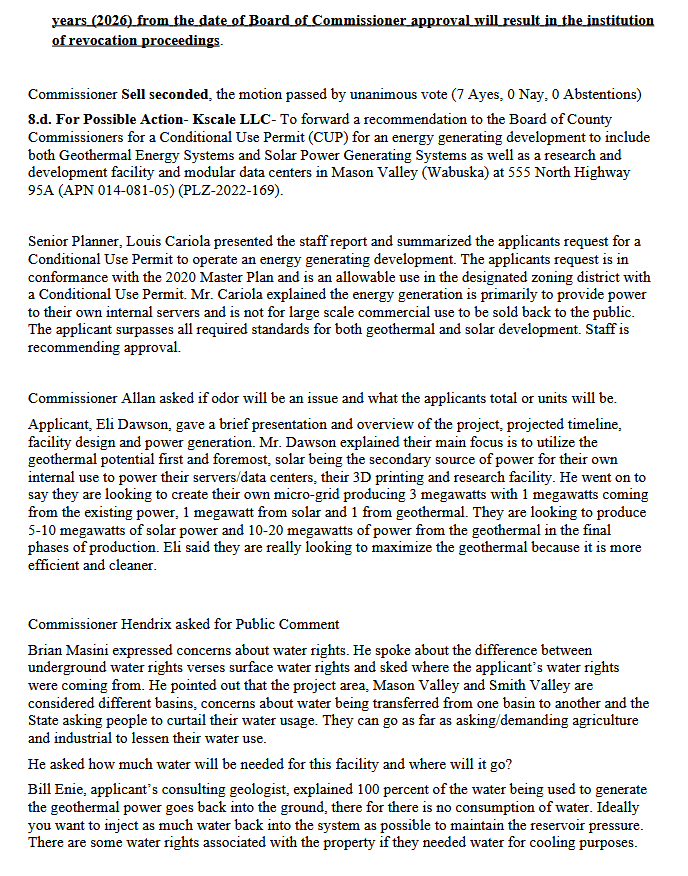 In 2022, the Winston Solar Project and Kscale LLC had Solar Power & Geothermal Energy facility plans for Mason Valley NV agendized for the 8.9.2022 Lyon Co. Planning Commission.