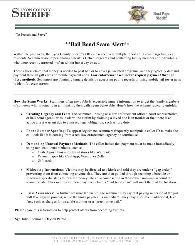 Lyon County NV Sheriff Pope’s Message of the Week on January 16, 2026