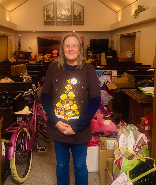 Cindy has been running the Angel Tree for 21 years. She starts around Halloween. Information is shared through Facebook and word of mouth. Families come in, pick up an application, fill it out, and bring it back. If they want to remain anonymous, there is a drop box on the building where applications can be returned quietly.