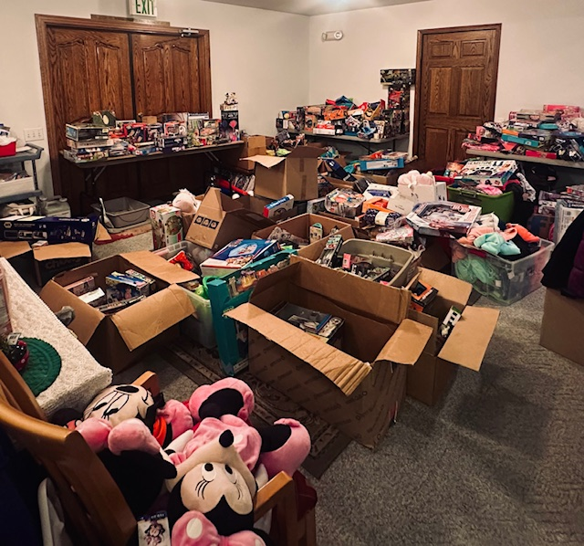 A room set aside for extra gifts, kept on hand to make sure no child is missed.