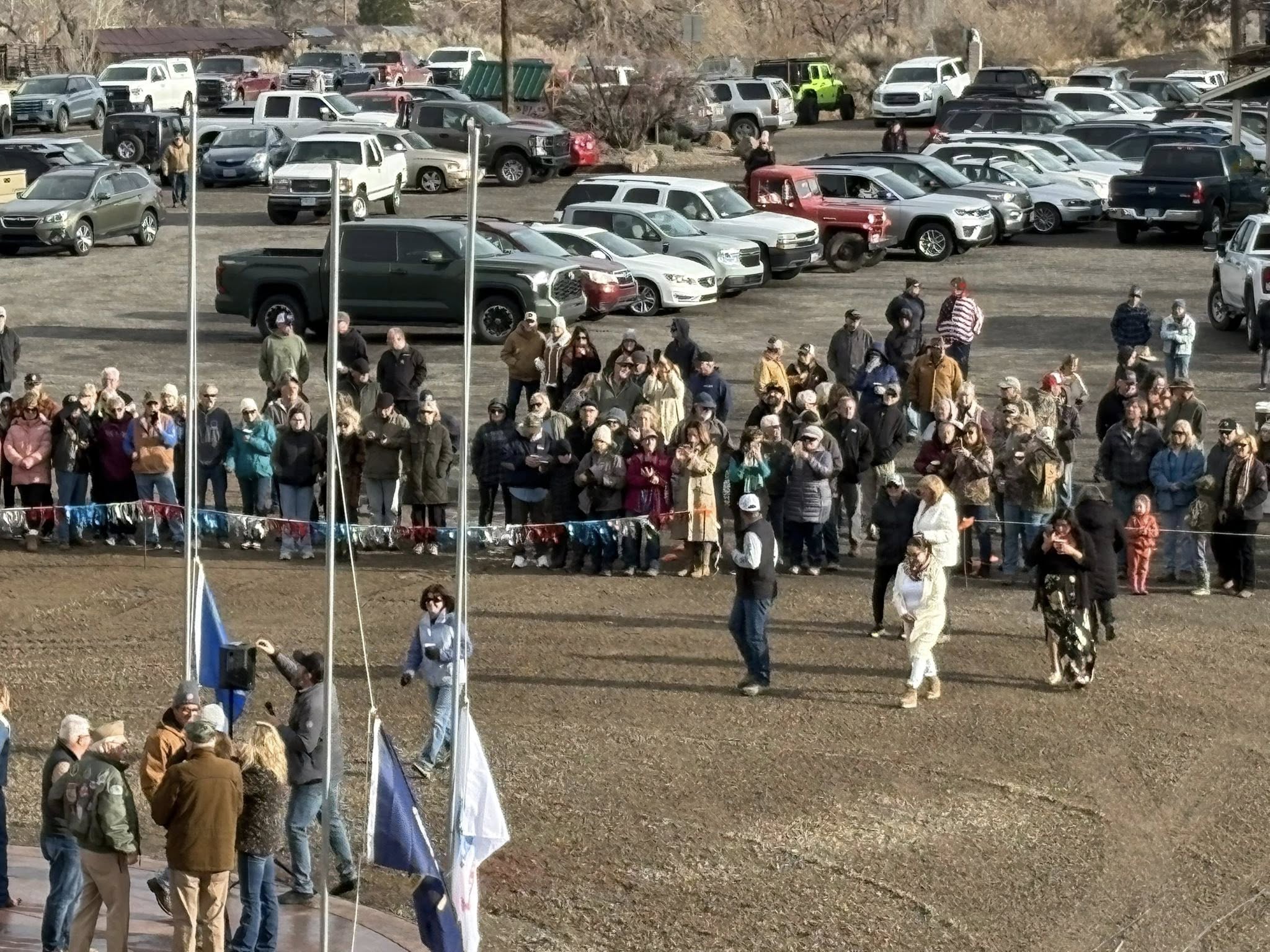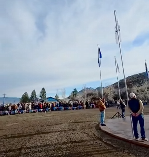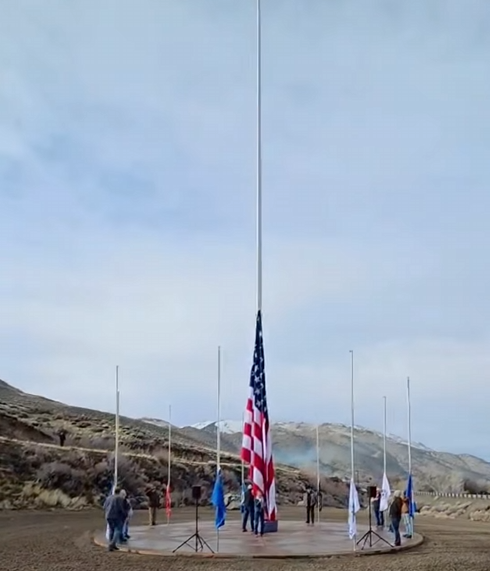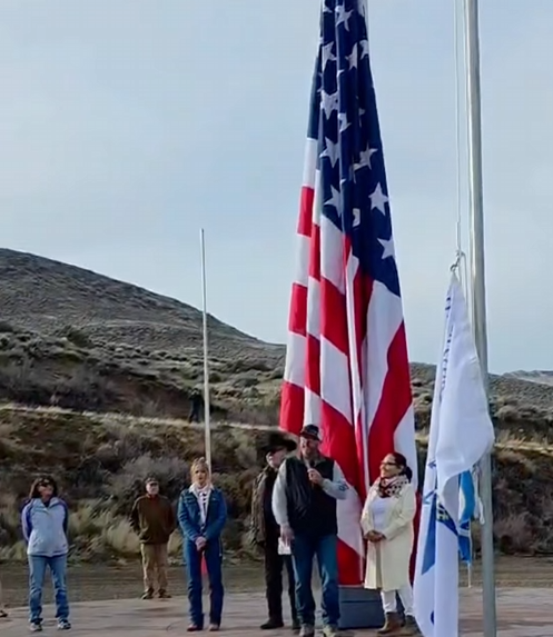 The following story and accompanying photos from Rosie Sanders, proprietor of Rosie’s Place & Cantina in Smith Valley, Nevada, reflect the phenomenal sequence of events that culminated in the breathtaking “Raising of the American Flag” to the top of its 80 foot pole on Thursday, January 1st, 2026: