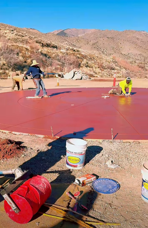 December 13, 2025: Look how beautiful it’s coming along. Honestly, it’s even better than I had imagined. It’s not finished yet—they will still be adding a stamped design. These amazing workers are doing extra work to stamp the concrete so it will look even more beautiful.