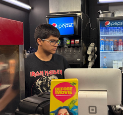 Robert working concessions at the Yerington Movie House in July 2025 for the screening for Remaining Native.