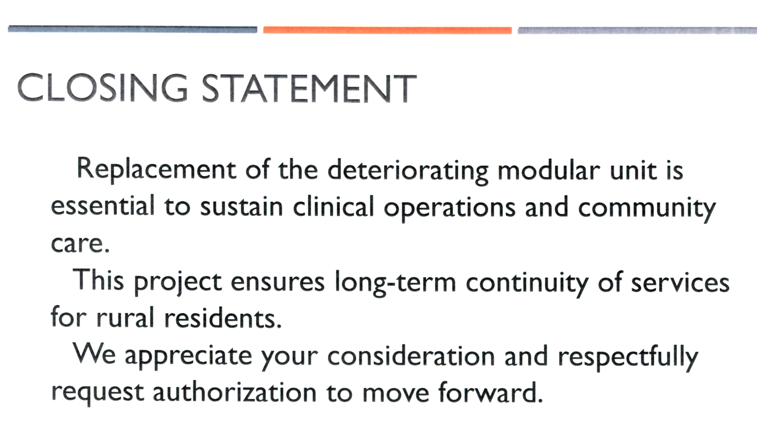 At the December 4, 2025 Lyon Co. Board of County Commissioners, South Lyon Medical Center CEO Toni Inserra delivered a powerful presentation on South Lyon Hospital District Financing New Primary Care Clinic. Commissioners unanimously approved a resolution supporting the South Lyon County Hospital District’s request to move forward with financing for a new Rural Health Clinic (RHC). The action authorizes the District to issue a medium-term interim debenture of up to $2.8 million, to be repaid from the future sale of a medium-term obligation of the same amount. This financing mechanism will help cover costs associated with developing the new primary care clinic.