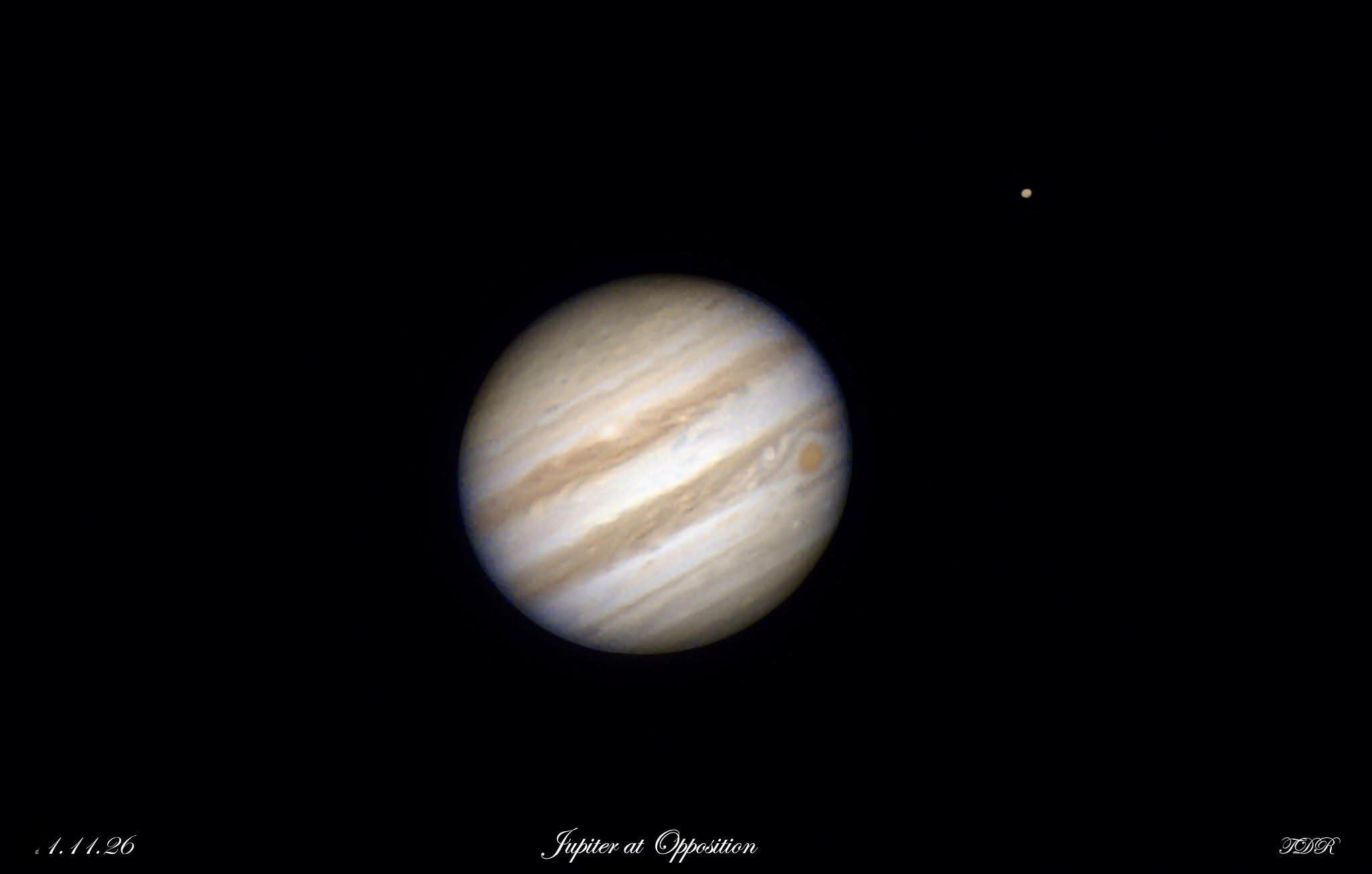 The planet was in Opposition. What is Opposition? Jupiter at opposition means Earth passes directly between the Sun and Jupiter, aligning them, which is the best time to see it because it’s closest, brightest, and visible all night, rising at sunset and setting at sunrise, offering clear views of its moons and cloud bands. It’s when the planet appears biggest and brightest as seen from Earth, appearing opposite the Sun in the sky!
