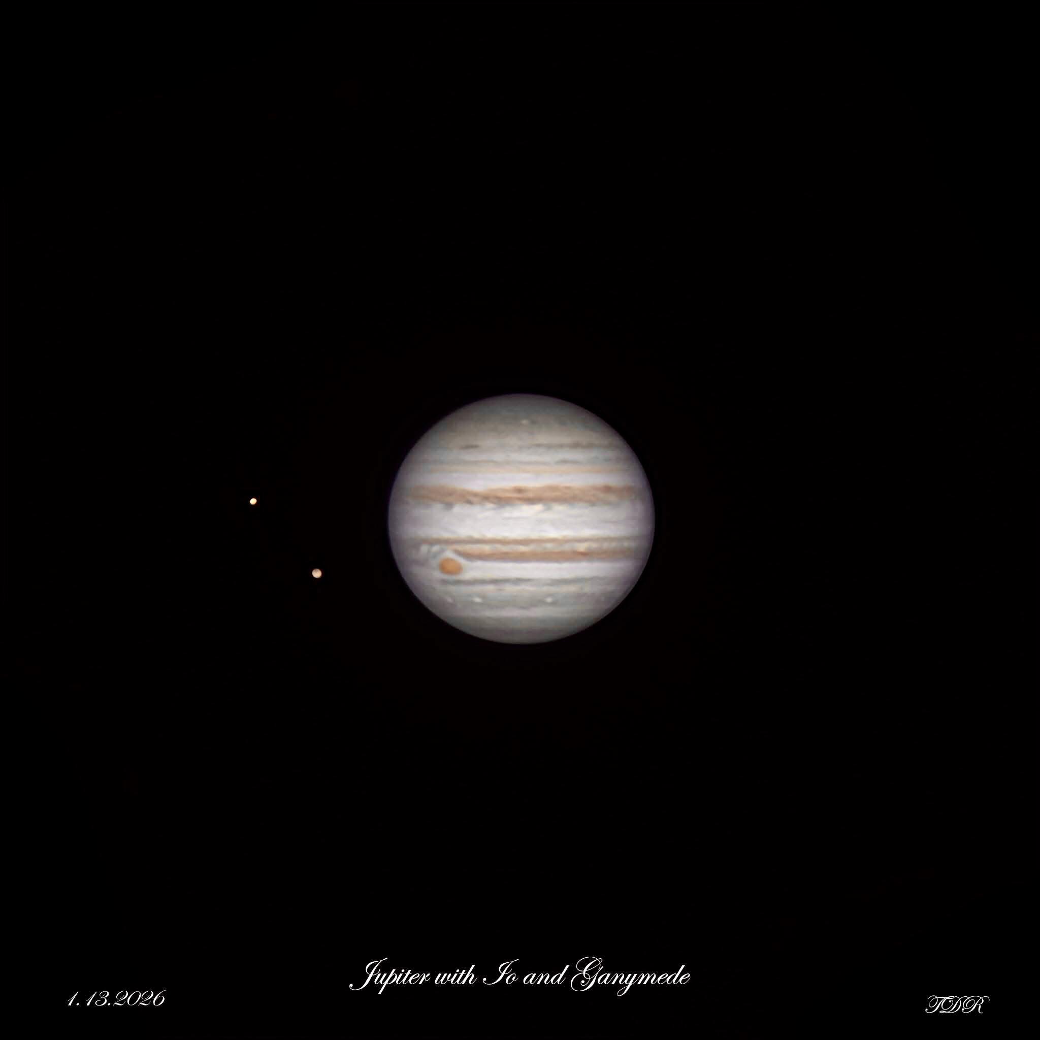 If you can stand it, another Jupiter. This time with the moons Io (upper) and Ganymede. It’s hard not go shoot it when conditions are good and it’s at opposition. One month from now, Jupiter will appear 20% smaller to us! Amazing to think about!