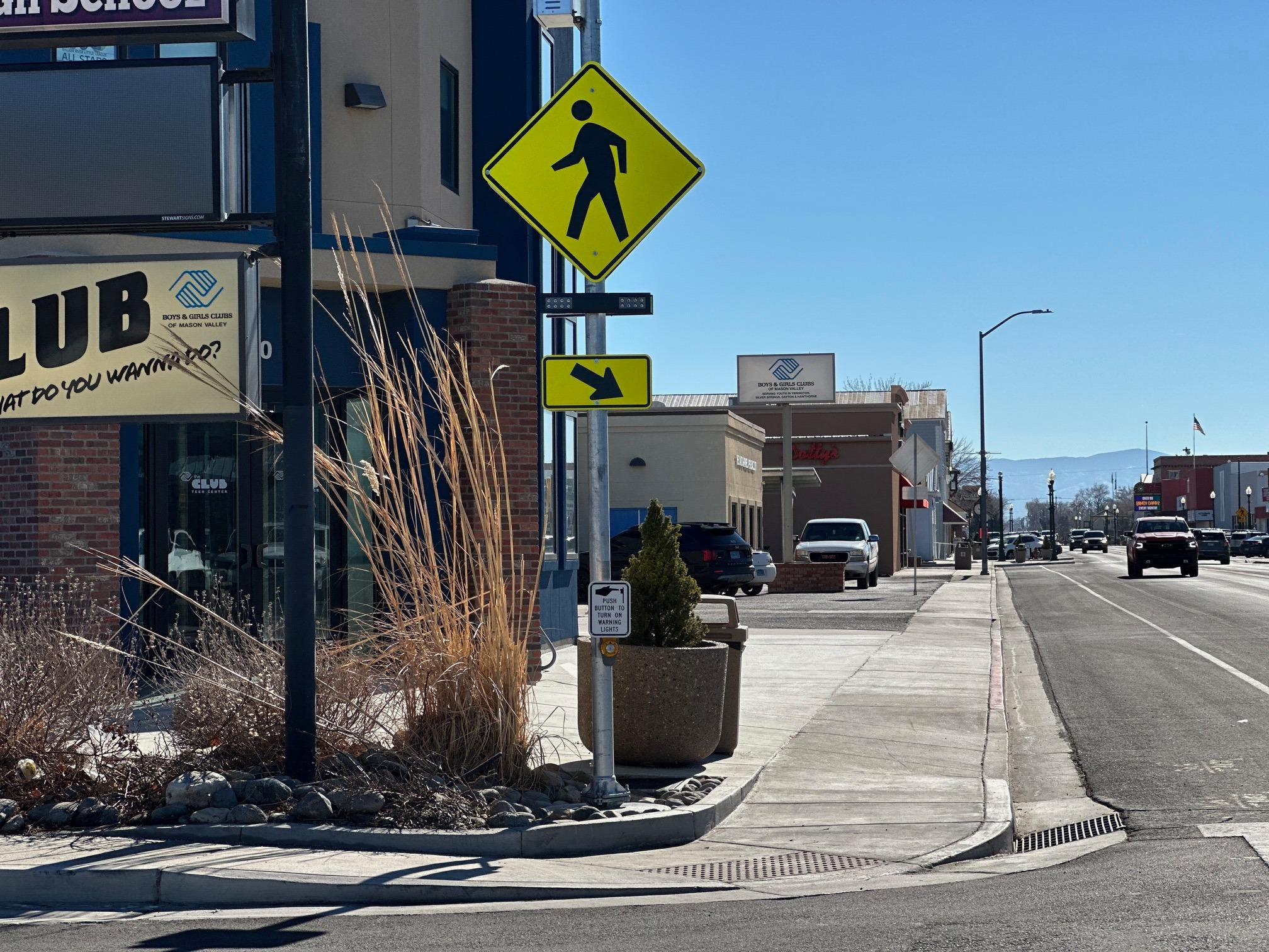 You may have noticed that the flashing crosswalk signs outside of the Boys & Girls Club Teen Center and Financial Horizons Credit Union are installed and operational. This was part of an initiative from your City to increase pedestrian safety on Main Street, especially at a location of high foot traffic. The Yerington NV Main Street Committee and your City staff worked together to help push this project along. Thank you to all involved.