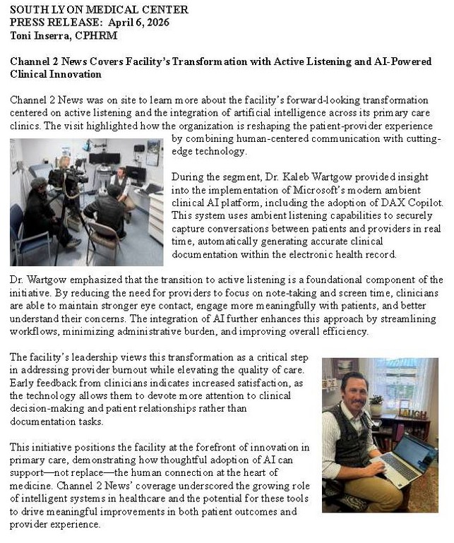 “So far we’ve been kind of tinkering around with this for a few weeks, or at least I have, and really just launched it kind of widespread here in the last week. But so far it does seem to be working pretty well and I think I’m optimistic, like I said earlier, that it’s going to take some of that charting, documentation, administrative burden off the providers so they can actually focus on the medicine,” says Dr. Kaleb Wartgow Chief of Medical Staff and Primary Care Physician at South Lyon Medical Center.