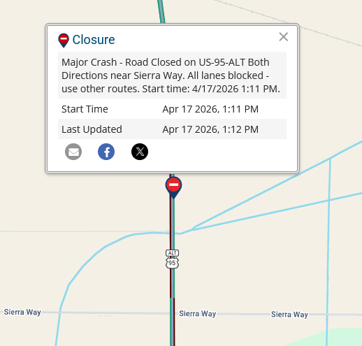 Update- 4/17/26 5:50 p.m.: US95A is now open.