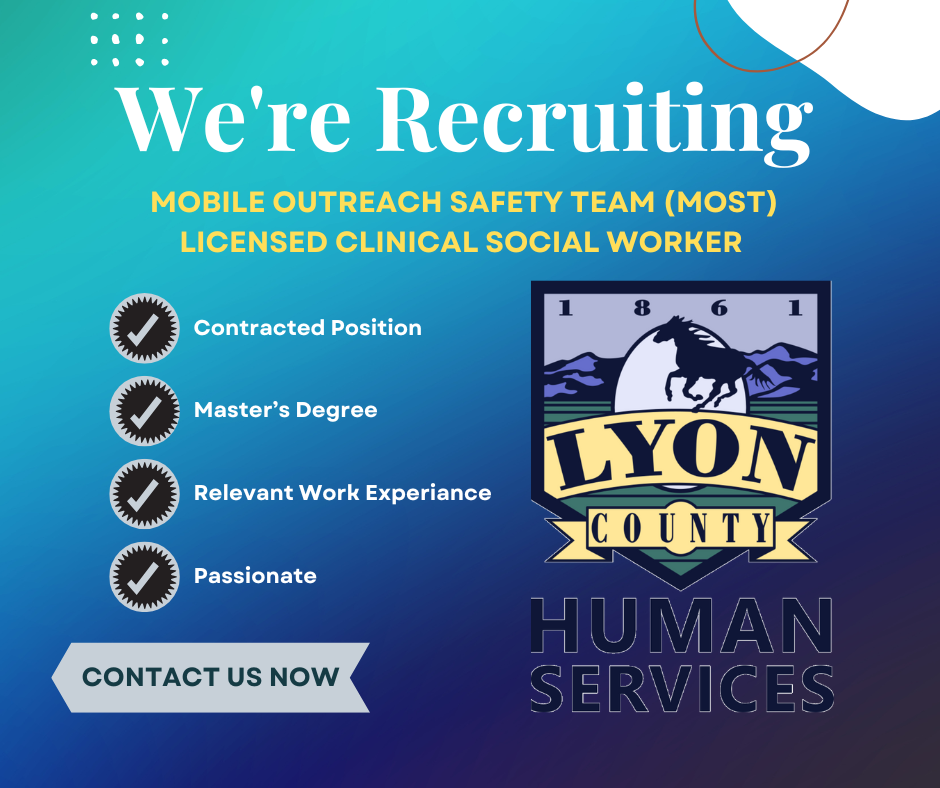 September 2025: We’re Recruiting! Mobile Outreach Safety Team (MOST) Contracted Position with Lyon County Human Services and must have a...
