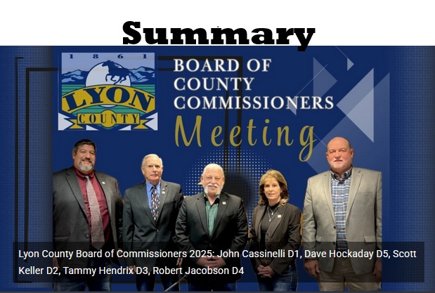 News Release September 8, 2025 Yerington, Nevada – The Lyon County Board of County Commissioners (BOCC) met on Thursday, September...