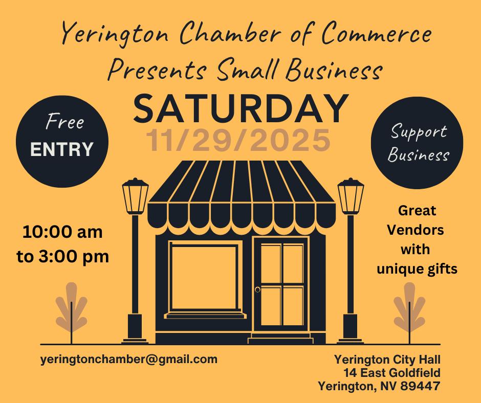 The Yerington Chamber of Commerce is excited to host Shop Small Business Saturday — happening the Saturday after Thanksgiving — and we’re looking for amazing local vendors to be part of this festive community celebration!