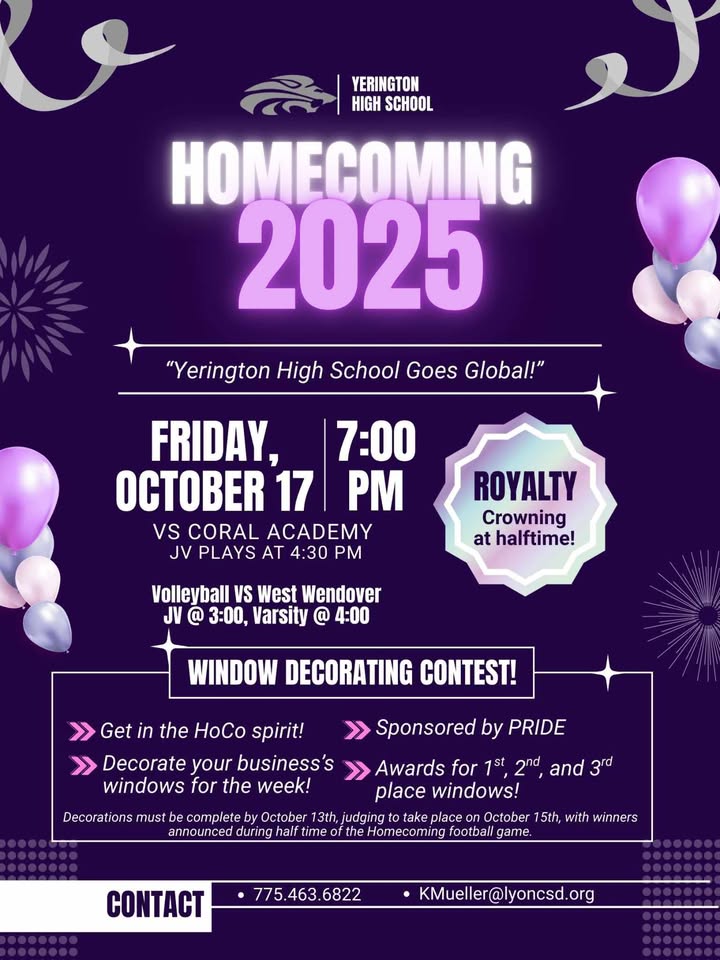 “Yerington goes global” is the theme and we’re counting on community support! Let’s show our school spirit!