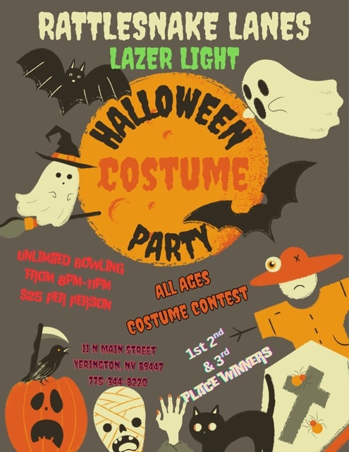 October 31st, $25/person, 8-11pm @ Rattlesnake Lanes: